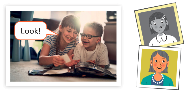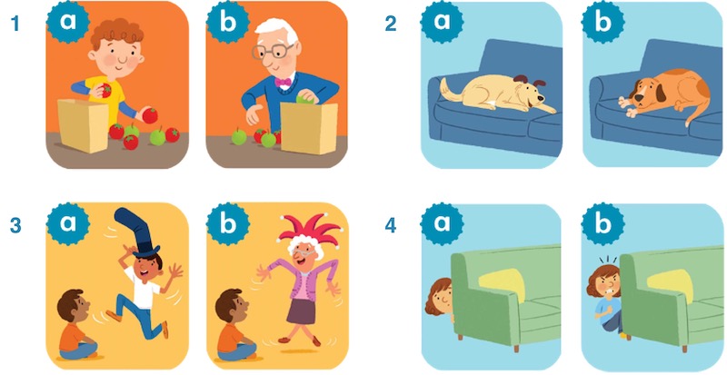 2 Choose a funny photo. Work with a partner. Ask and answer.