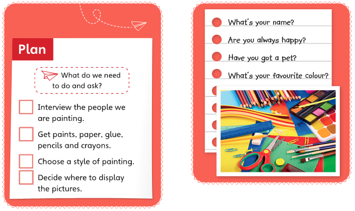 7 Make your own picture dictionary. Draw happy, sad and funny faces and write.
