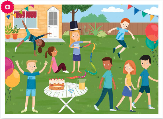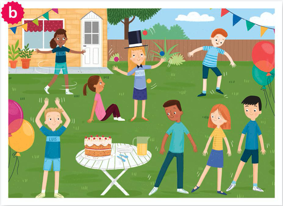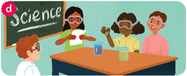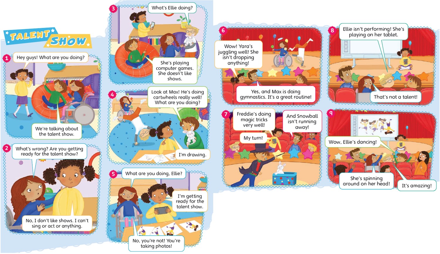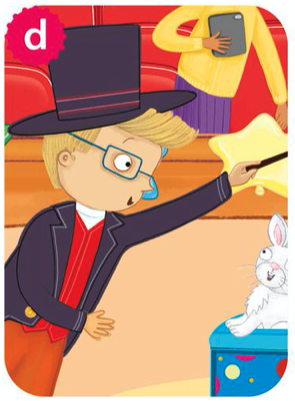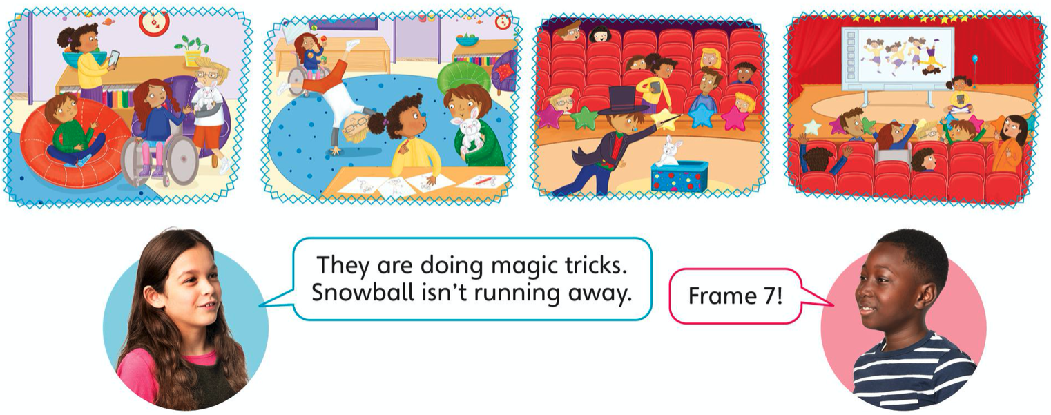 5 Work with a partner. Look at the frames from the story. Say what's happening. Guess the frame.