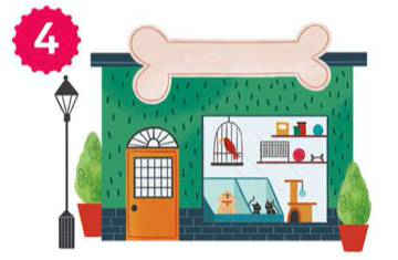 Bookshop, pet shop,
