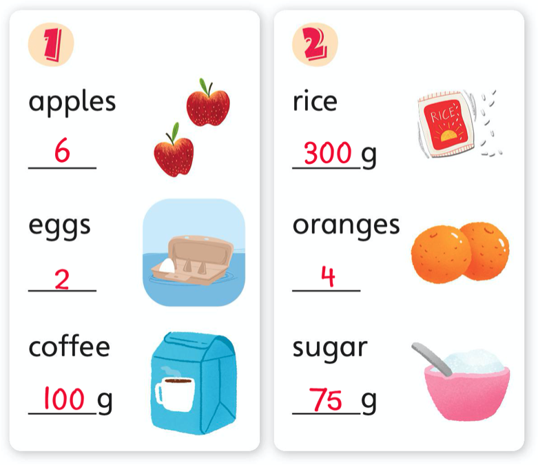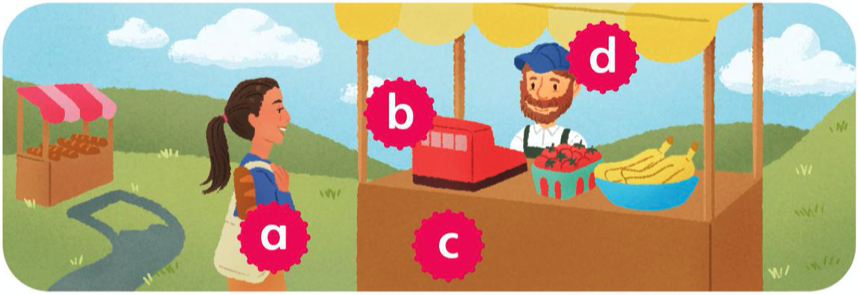 1 Look and label.