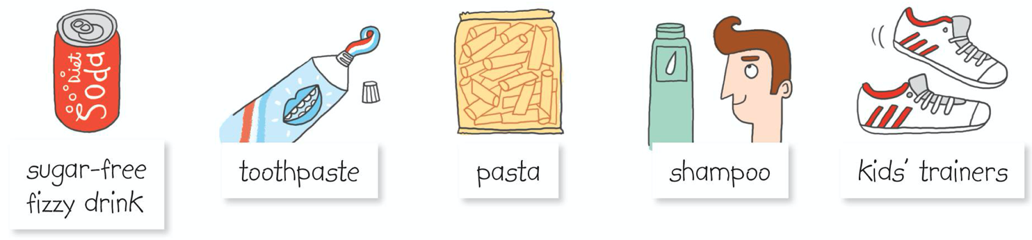 1 Where can you buy these things? Sort.