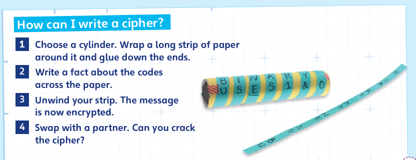 7 Use your code wheel to write a label for an item at the exhibition. Swap with a partner and decode the label.