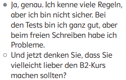 In der Sprechstunde von Frau Wirtz – Lesen Sie zuerst den Anfang und das Ende des Dialogs. Lesen Sie dann die Dialogteile A bis F und nummerieren Sie sie in der richtige Reihenfolge. Hören Sie anschließend den Dialog zur Kontrolle.