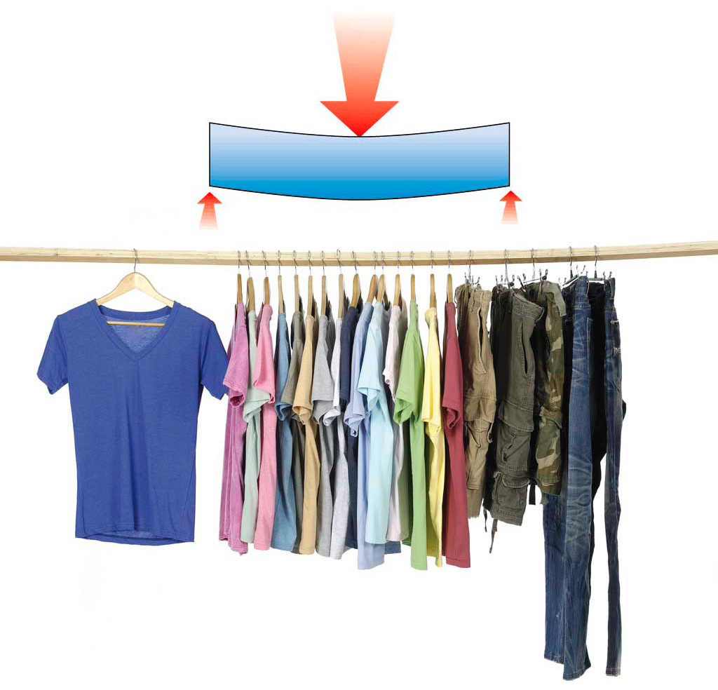 • El tablero de un puente situado entre sus apoyos, las baldas de una estantería o la barra de un armario ropero son ejemplos de flexión.
