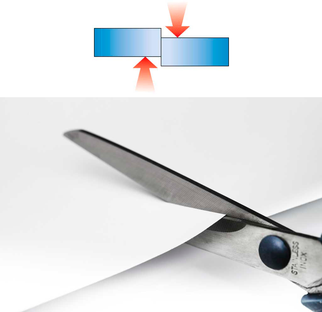 • Aparece cuando las fuerzas se encuentran muy juntas, pero no enfrentadas, una hacia arriba y otra hacia abajo, intentando deslizar una parte del objeto sobre la otra.