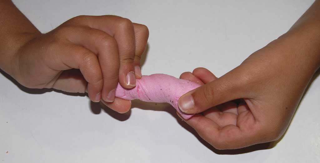 Podemos notar, además, que el tipo de sensación es distinto en cada caso, porque hemos aplicado las fuerzas de manera diferente. Estas fuerzas provocan deformaciones de distinto tipo en los objetos.